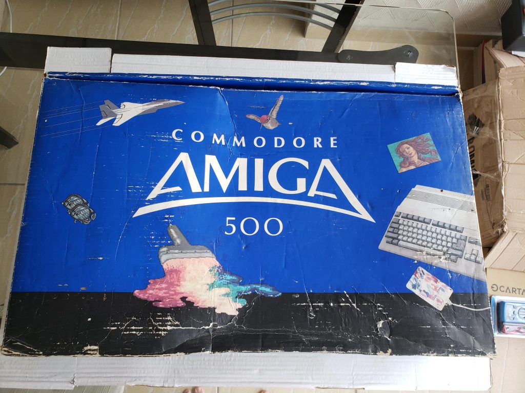 - Commodore Amiga 500 na caixa com mouse e fonte;