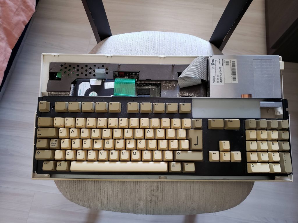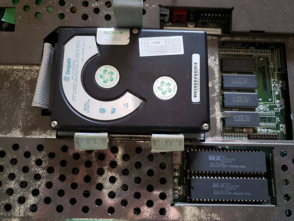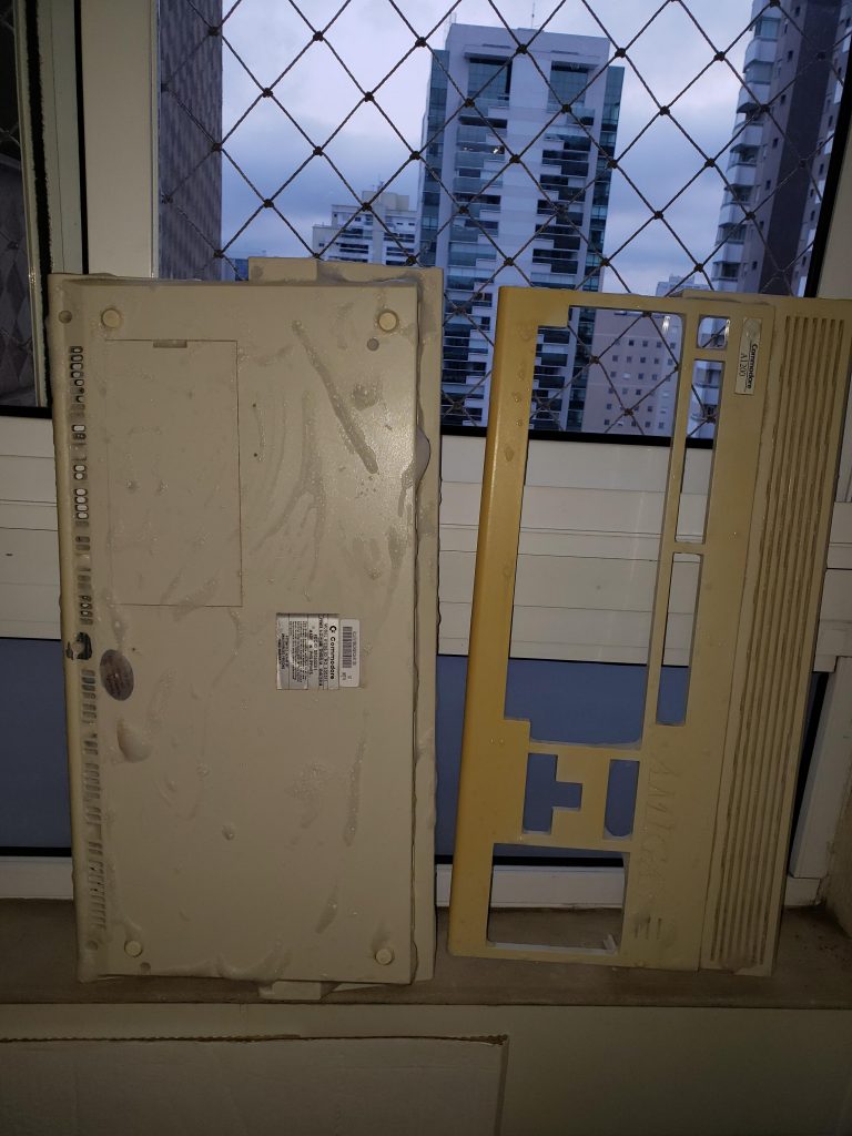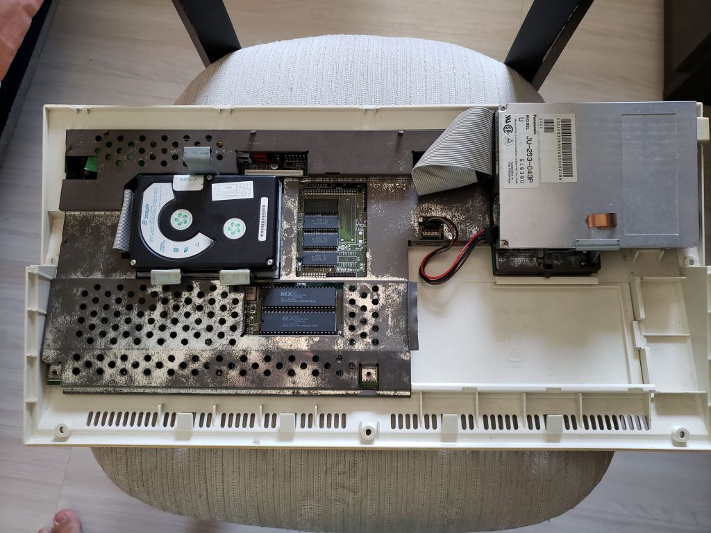 Parece que não está muito mexido. O floppy drive funciona e vou manter ele ai mesmo. No meu A600 inventei de colocar um emulador de drive chamado Gotek. Legal, bacana, só que o posicionamento da entrada da USB para colocar o pendrive e dos botões para trocar a imagem do disco fica ó, complicado. Isso sem estragar a carcaça o que eu não gosto de fazer. Então. o floppy interno fica, o emulador de floppy será externo (mas isso é uma outra história).