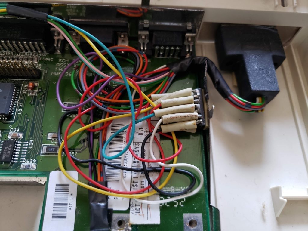 Ah, é do conector DE-15 para video RGB. O A1200 possui saída de video RF(um lixo), composto(ruinzinho) e RGB(top), só que o conector original é um DB-23 praticamente impossível de encontrar. Normalmente o pessoal pega um DB-25 que no mundo PC é utilizado para porta serial e literalmente corta os últimos dois pinos. Ou vc puxa os sinais direto do conector e faz um “artifício técnico não documentado”, também conhecido como gambiarra. Mas se funciona, tá bom.