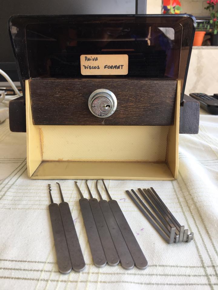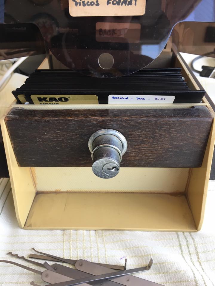 A primeira foi para abrir um arquivo de disquetes que comprei na feira do Bixiga. Estava num bom estado mas trancado e sem as chaves. Cheio de disco de 5 e 1/4, logicamente todos mofados. Consegui abrir ele sem muito esforço e sem danificar a fechadura. Uhu!