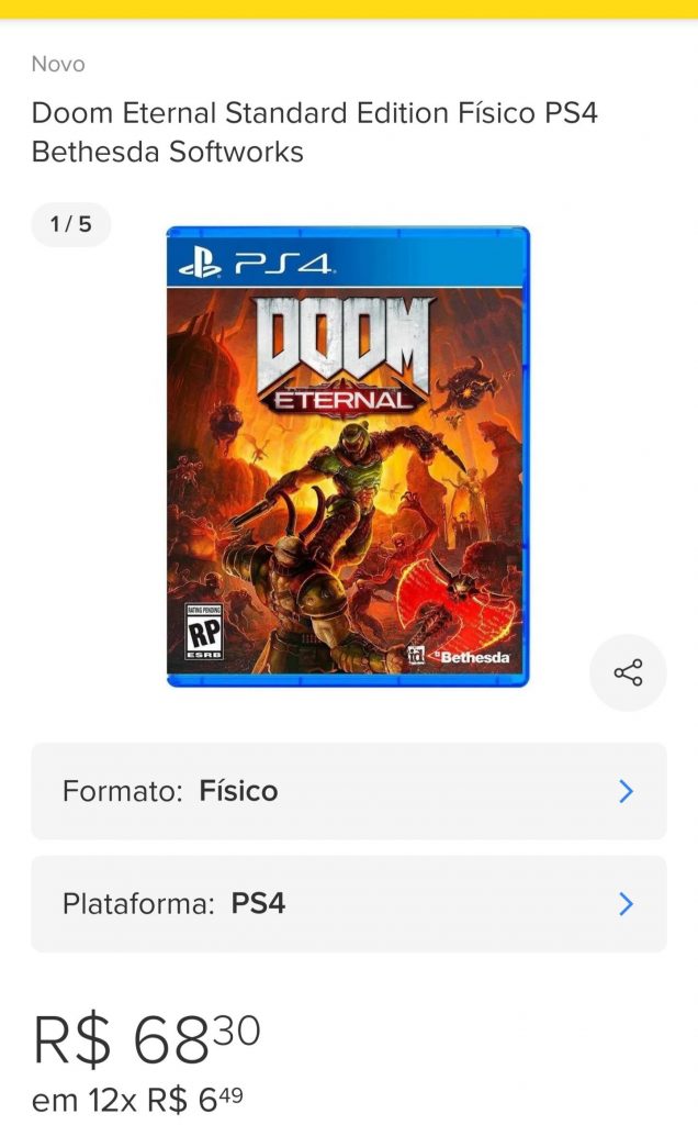 A média do Doom para PS4 no ML é de R$ 176,42, isso quando se considera o Doom de 2016 que abaixa um pouco o valor e o Doom Eternal que foi lançado ano passado que sobe a média. Agora, a R$ 68,30 tá bem acessível.
